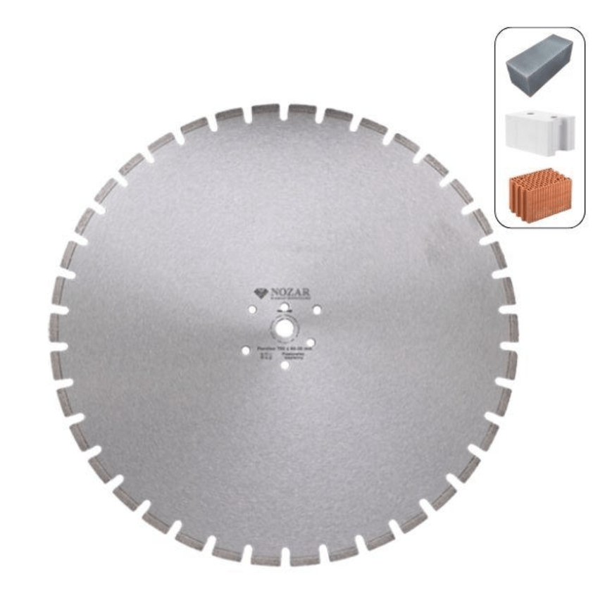 Tarcza NOZAR KSP 700 jest doskonała do cięcia różnych materiałów, takich jak poroterm, cegła murarska, cegła silikatowa, gazobeton, oraz ścierne wyroby betonowe.