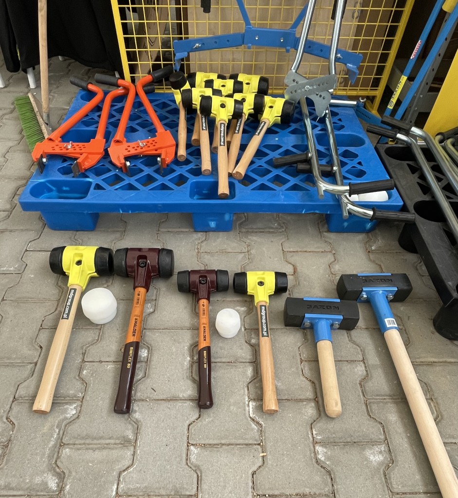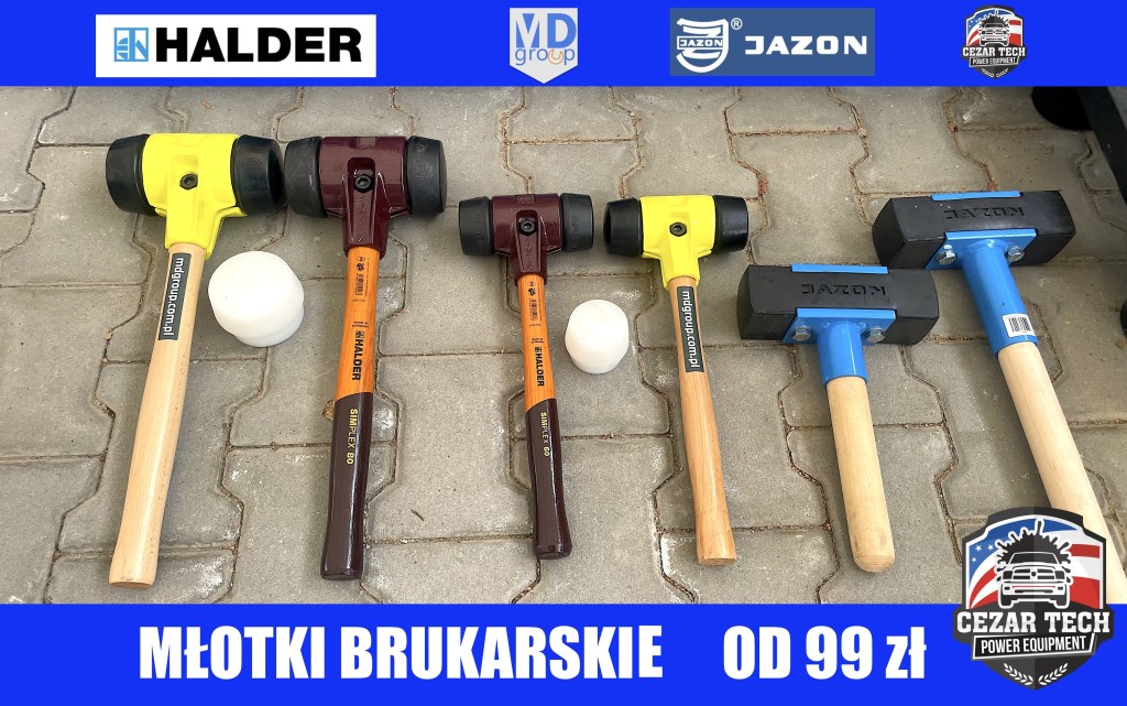 – Młotki brukarskie – są podstawowym narzędziem wykorzystywanym podczas prac brukarskich. Są zwykle wyposażone w jeden lub dwa obuchy. Są niezwykle pomocne podczas układania nawierzchni z kostki, umożliwiając precyzyjne ustawienie elementów oraz ich zagęszczenie na podłożu. Młotki brukarskie są dostępne w różnych rozmiarach i wagach, aby zapewnić optymalną wygodę użytkowania oraz skuteczność pracy.