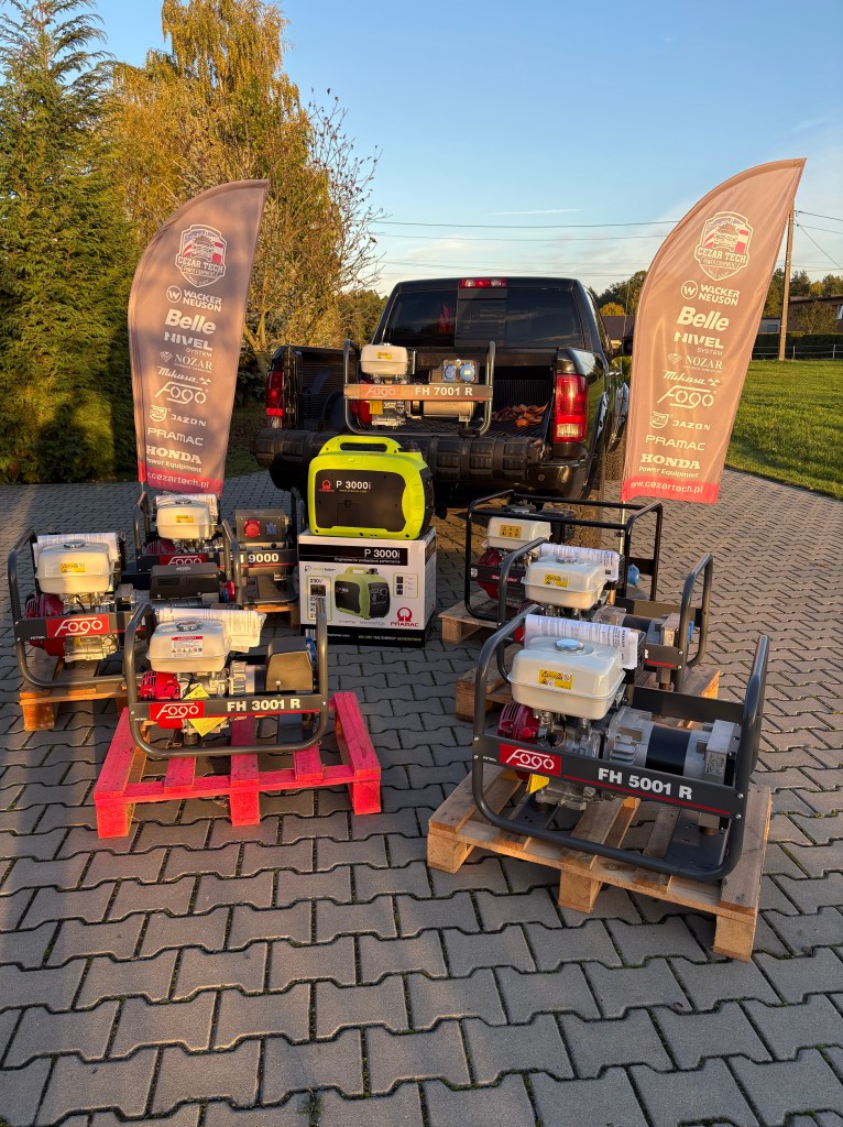 – Przenośne agregaty prądotwórcze – Małe, łatwe do przenoszenia urządzenia idealne do użytku domowego, kempingu, czy na placach budowy.